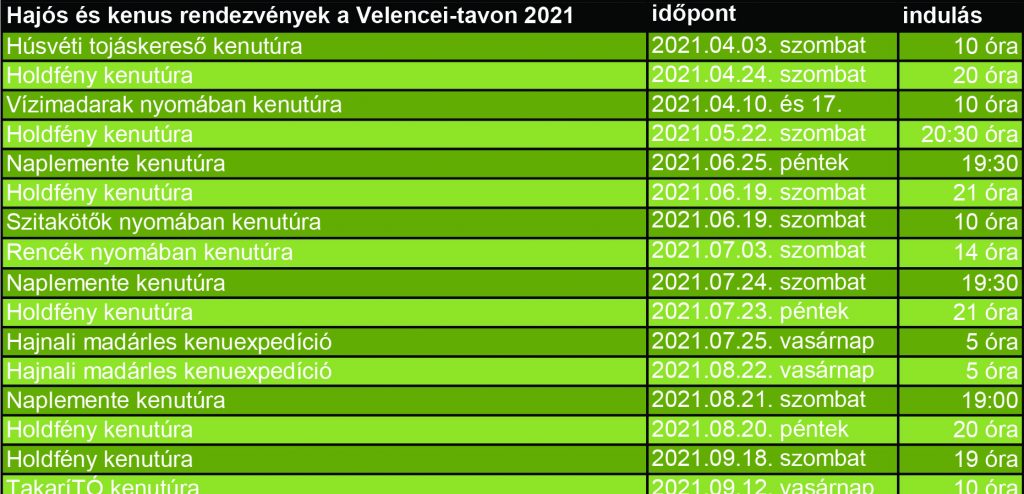 1,5, 3 vagy 6 órás, hajnali, nappali vagy napnyugtás kenutúra szakvezetéssel vagy GPS-szel. Tótakarító, húsvéti tojáskereső, szitakötős